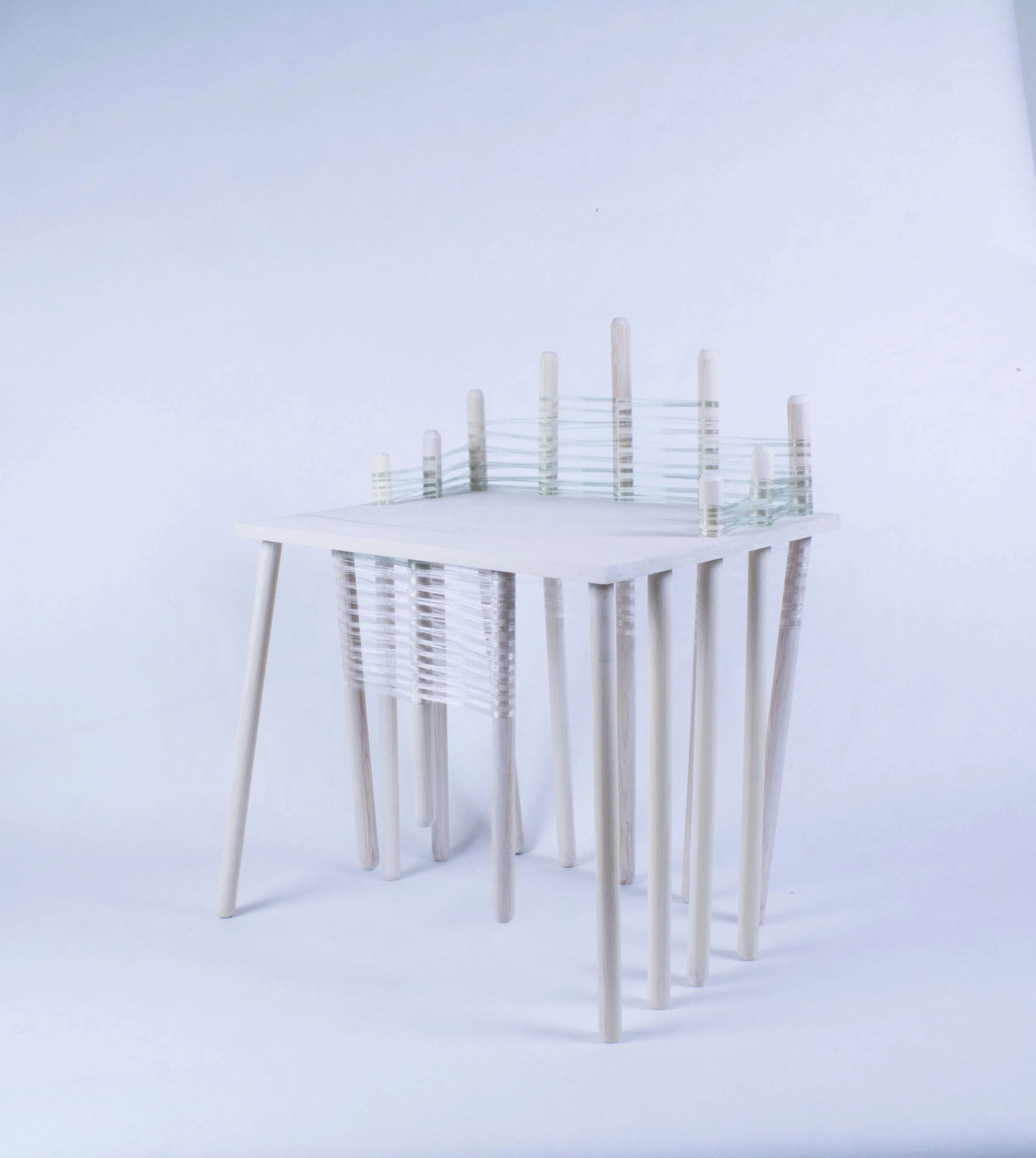Fishing line and wood, 45x73x27 cm