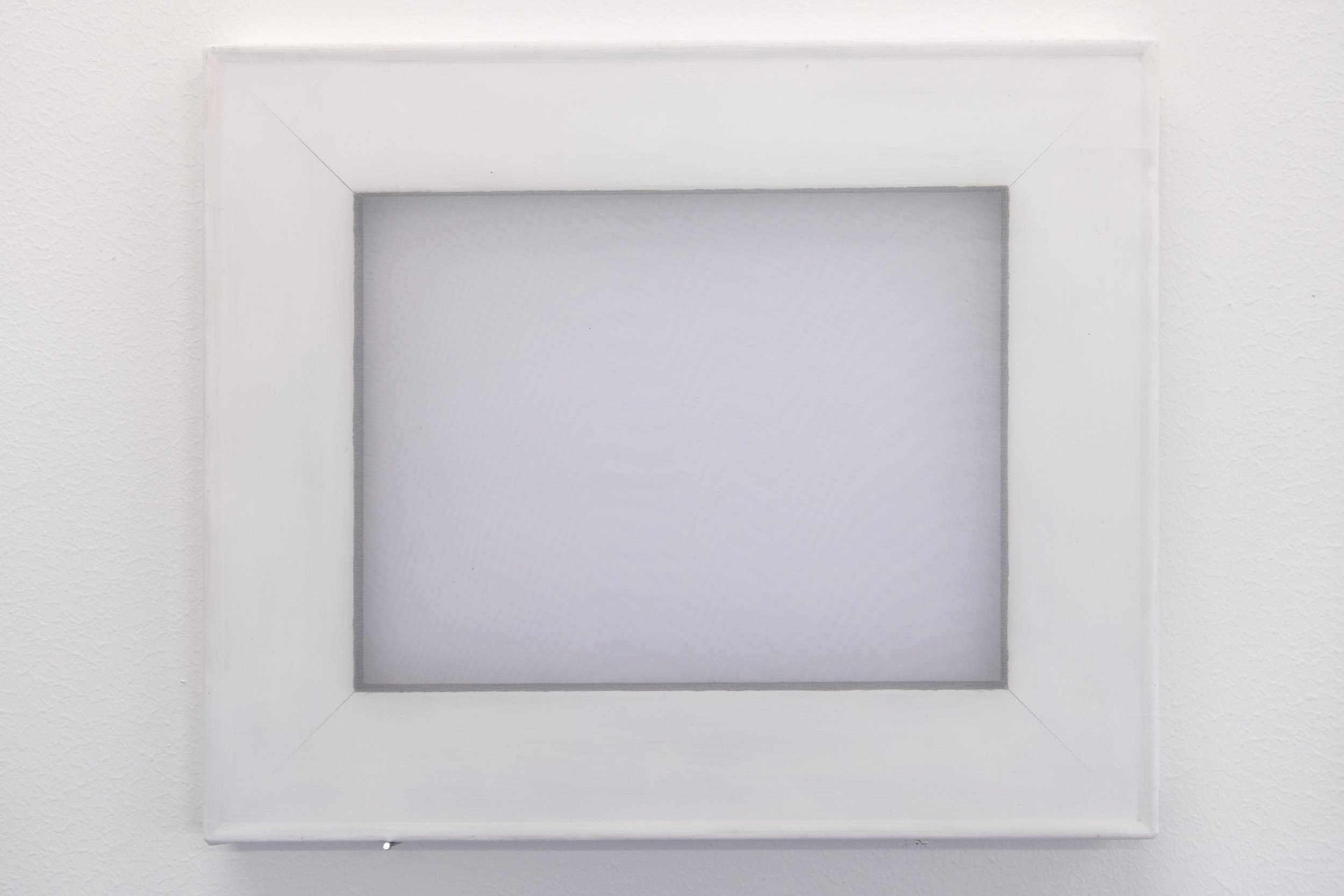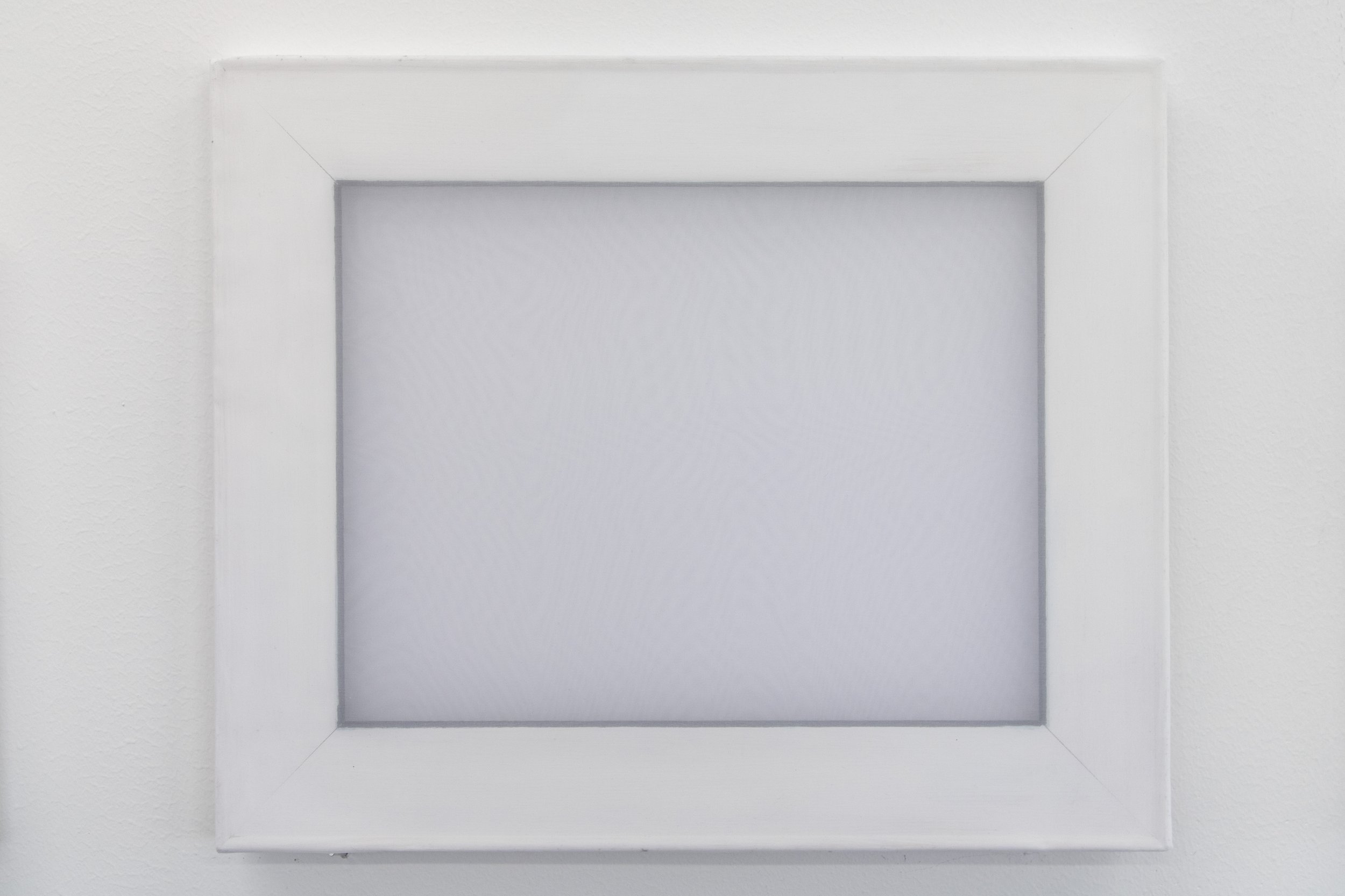 “Vitt Brus #1” (White noise #1), stretcher bar, chiffon fabric, acrylic, paper, 37x31, 45x37 and 37x31 cm, 2021