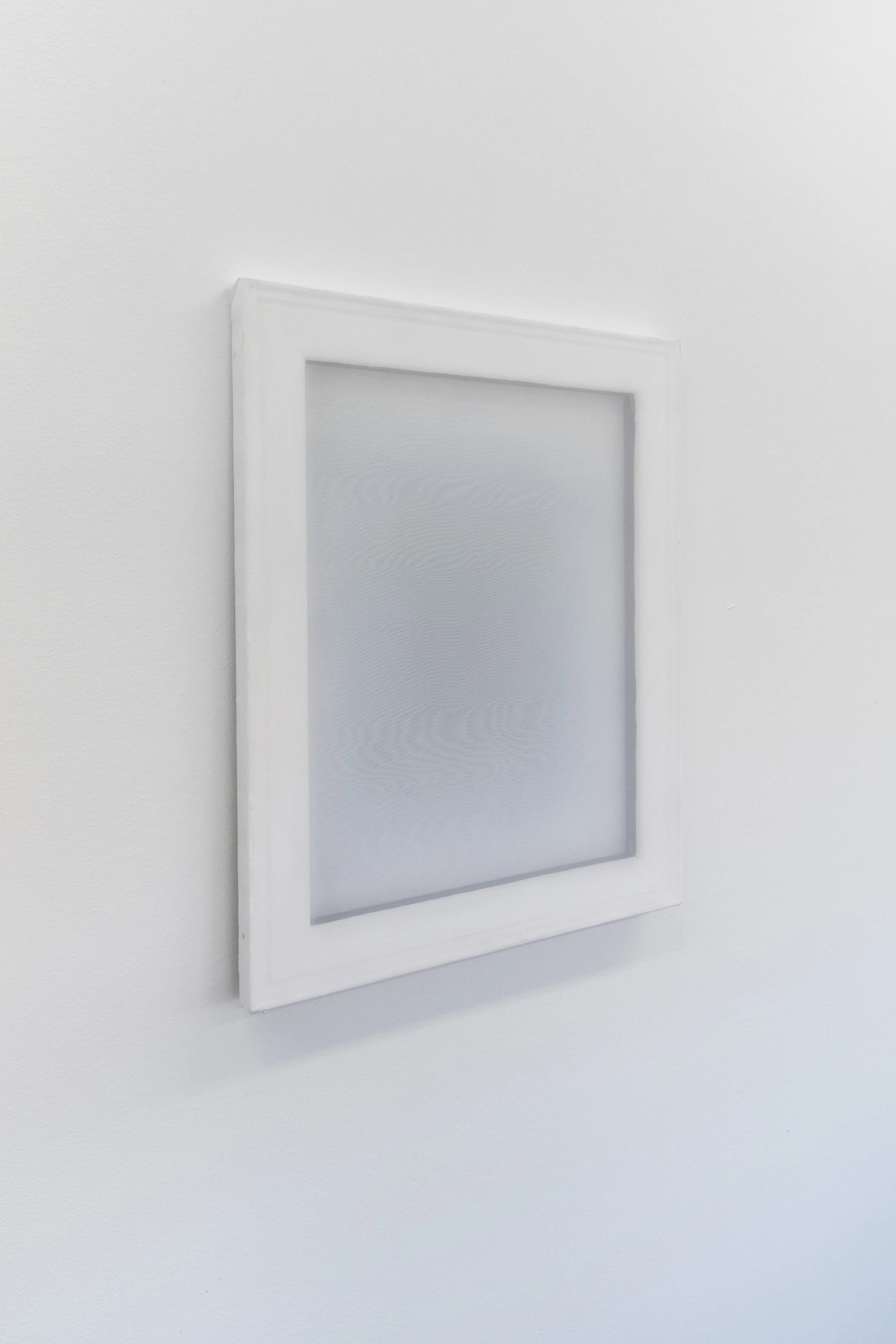 “Vitt Brus #2” (White Noise #2), stretcher bar, acrylic, chiffon fabric, oil on canvas, 60x50 cm, 2021